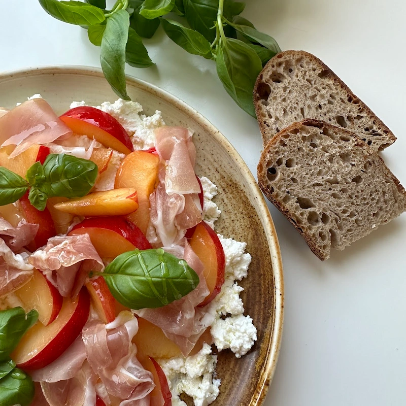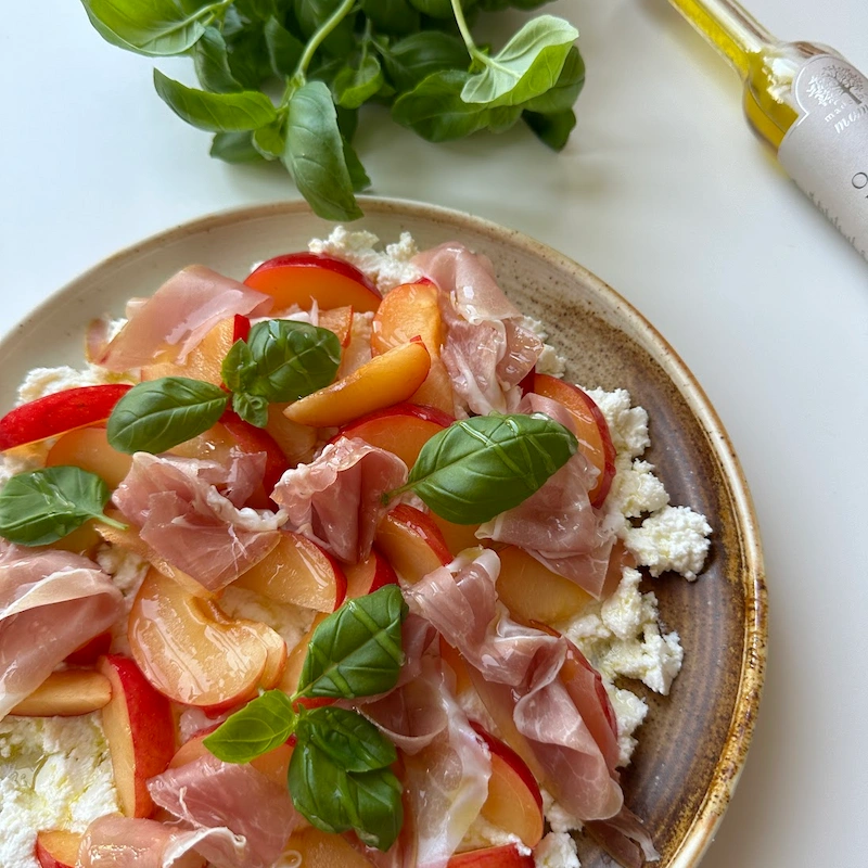 De enkelte ingredienser får lov at træde frem, og du kan nyde smagen af søde blommer, den luftige skinke og den cremede ricottaost.