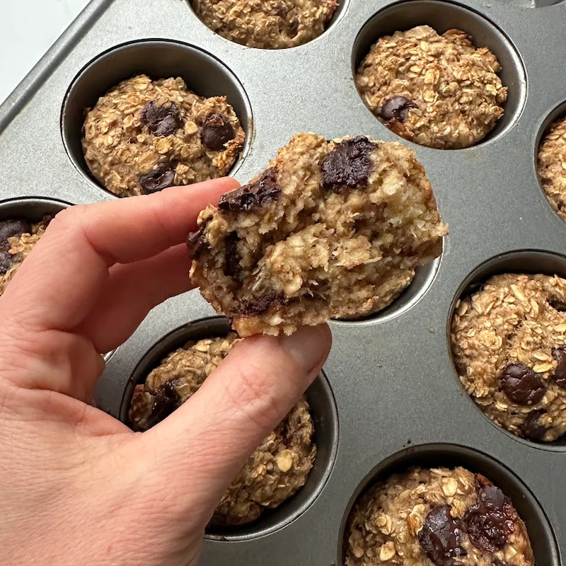 Så er de her havregrynsmuffins med banan og chokolade den perfekte løsning! 😋