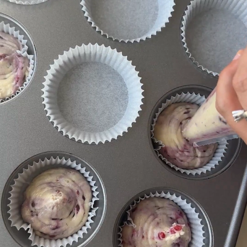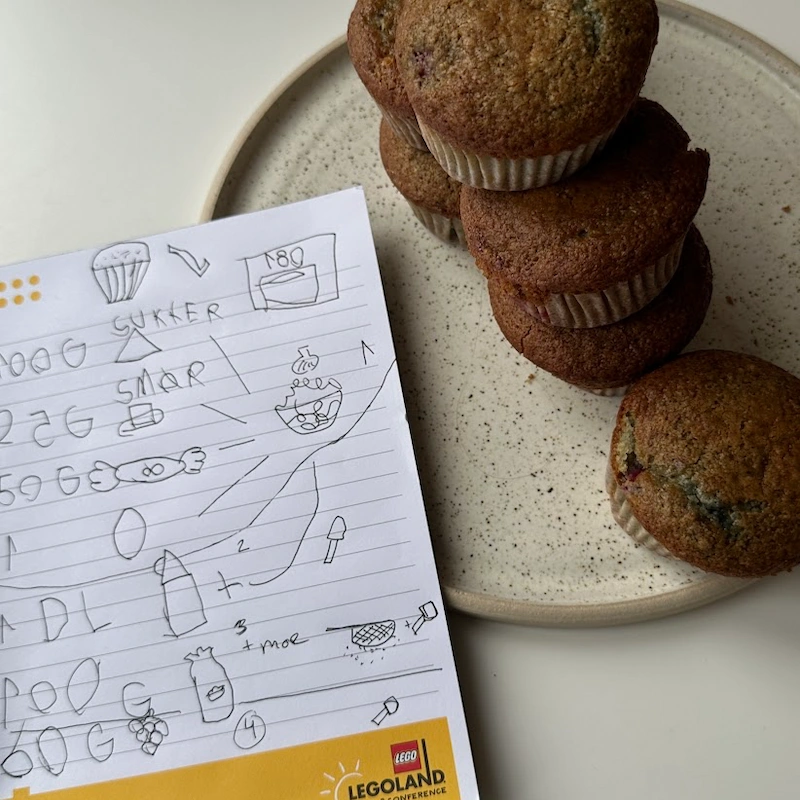 - Fordel dejen i 12 forme og bag i 20-25 minutter ved 180 grader