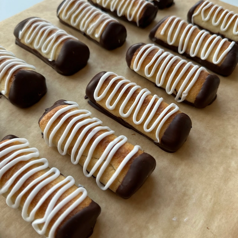 - Køles af på rist og kan herefter dyppes i chokolade og sprøjtes med glasur. Del 2 med chokolade og sprøjtning kommer finder du her. God fornøjelse🌟