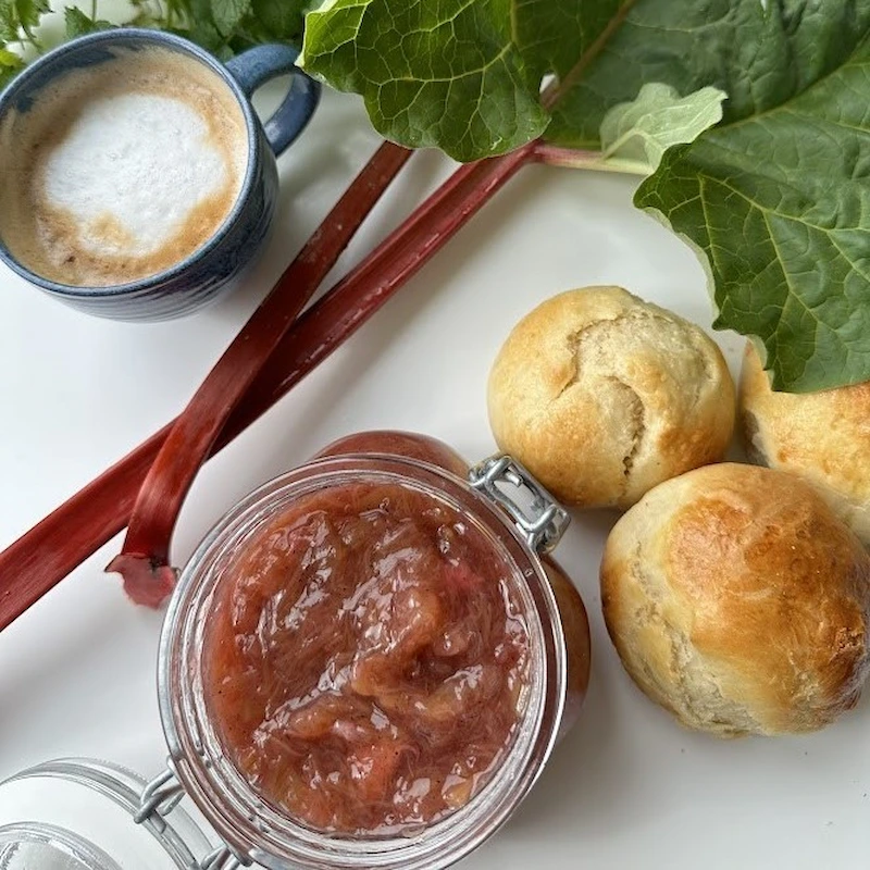 Rabarberkompot kan bruges TIL ALT fx. ovenpå boller, i kager, som topping på havregrød og yoghurt - og i desserter, som fx rabarber trifli.