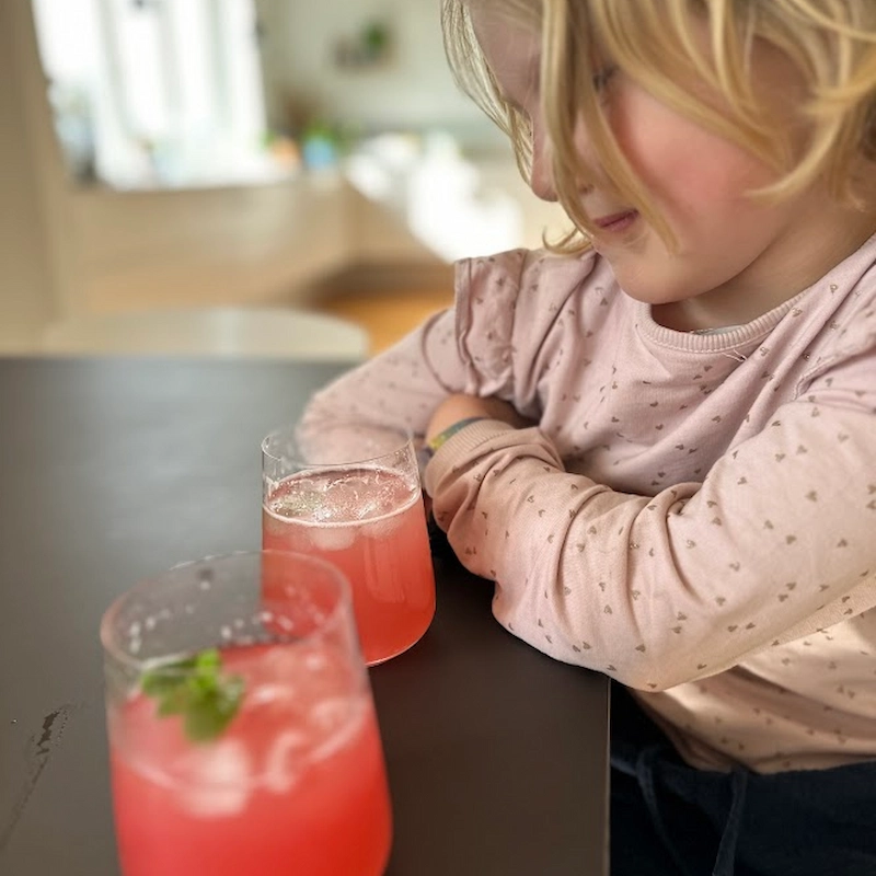 - Børnene foretrækker at blande med vand, jeg elsker at blande det med danskvand, så bliver det helt som en drink. God fornøjelse 🍹