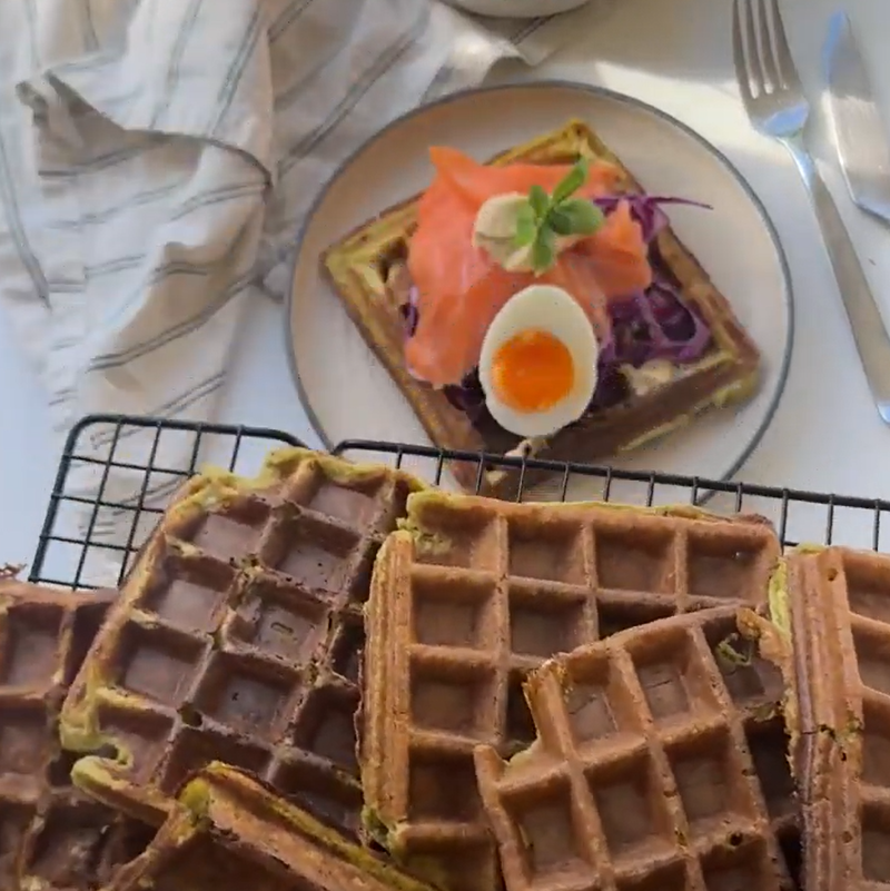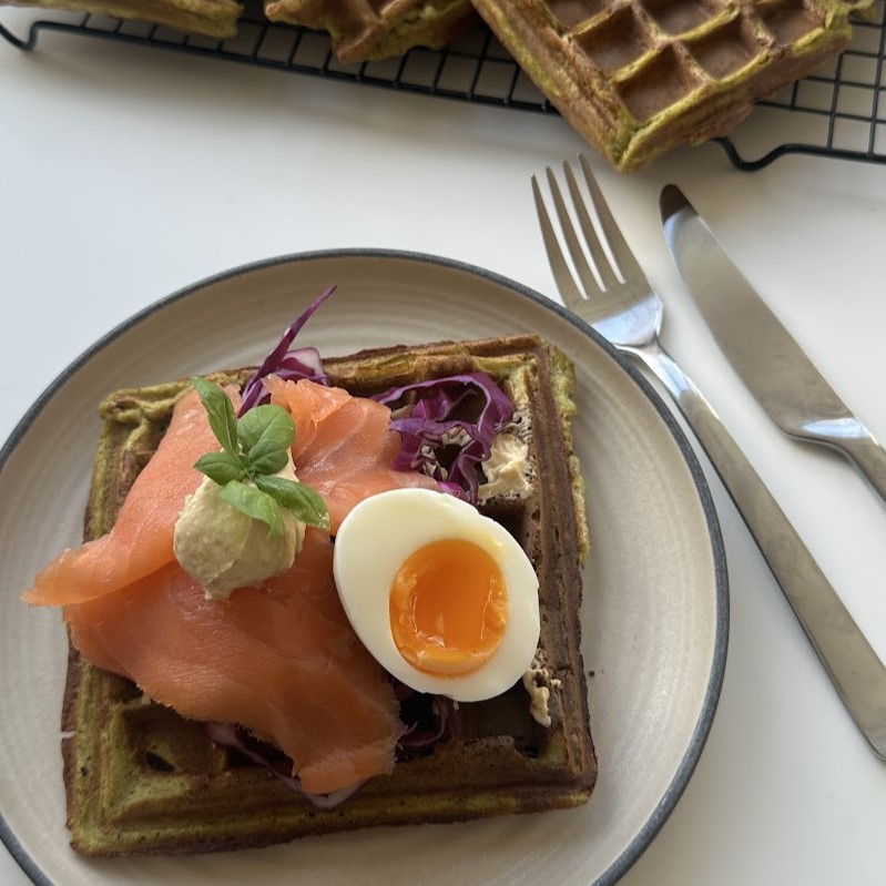 - Server dine squashvafler med dit yndlingsfyld. Jeg bruger humus, laks, fintsnittetrødkål og lidt æg for en proteinrig og mættende frokost eller aftensmad. Velbekom🌟