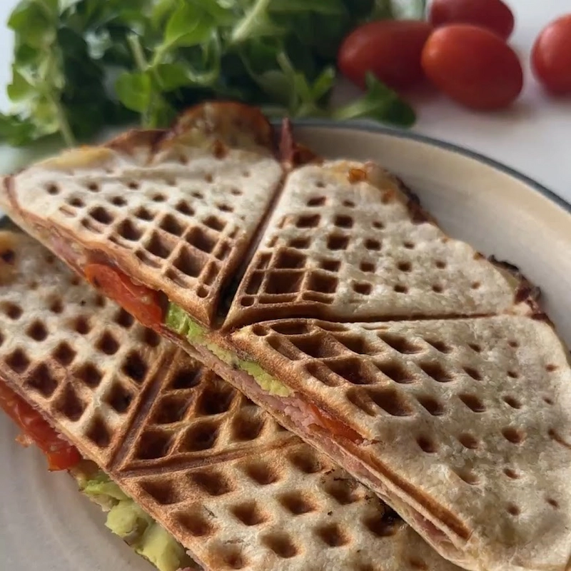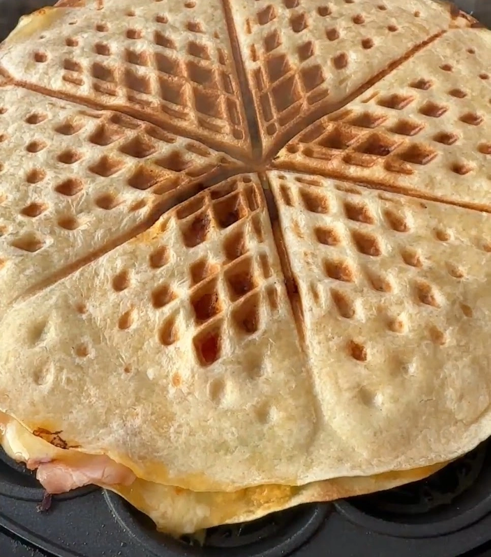 Med lidt ost og hvad der ellers var i køleskabet, blev de tryllet om til en sprød og lækker tortilla-vaffel-toast.